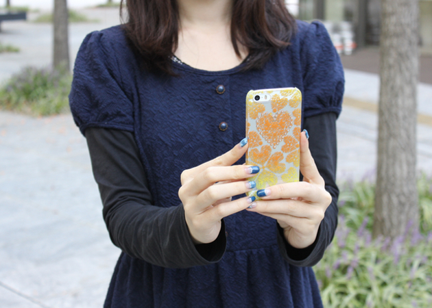 愛用のスマホはiPhone5s。ヨドバシカメラで購入したというiPhoneカバーはよく見るとディズニーもの。ストーンがかわいいけれど、机に置いている時にバイブが鳴るとすごい音がなってしまうのが難点だとか。